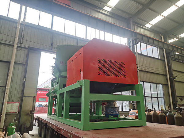 本機采用自動喂料裝置:原材料 → 自動喂料 → 四輥擠壓破碎 → 破碎粉碎室 → 物料傳送裝置 → 皮帶傳送裝置 → 除鐵裝置 → 成品物料,與同類型的木屑機,木材粉碎機相比該機器可以把帶有釘子的木材打碎,并且木材與釘子分離,從而減少拔掉釘子的麻煩。